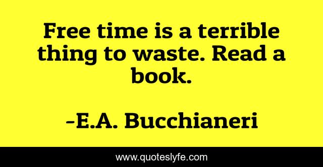 This page presents the quote "Free time is a terrible thing to waste. Read a book.". Author of this quote is E.A. Bucchianeri. This quote is about love-of-reading, mind, books, optimistic, learning, arts, love-of-books, author, positive,.
