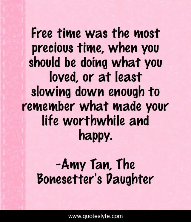 "Amy Tan, The Bonesetter's Daughter Quotes." Quoteslyfe.com, 2025. Fri. 05 Dec. 2025. <https://www.quoteslyfe.com/quote/Free-time-was-the-most-precious-time-183315>.