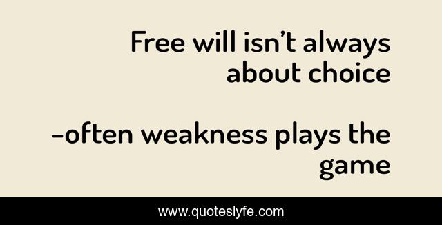 "often weakness plays the game Quotes." Quoteslyfe.com, 2025. Sat. 06 Dec. 2025. <https://www.quoteslyfe.com/quote/Free-will-isn-t-always-about-choice-175423>.