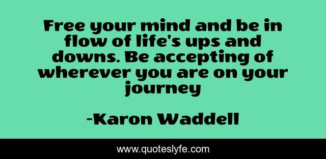 This page presents the quote "Free your mind and be in flow of life's ups and downs. Be accepting of wherever you are on your journey". Author of this quote is Karon Waddell. This quote is about accepting-yourself, flow-of-life, quotes, journey, quotes-about-life, quotes-to-live-by, journey-of-life,.