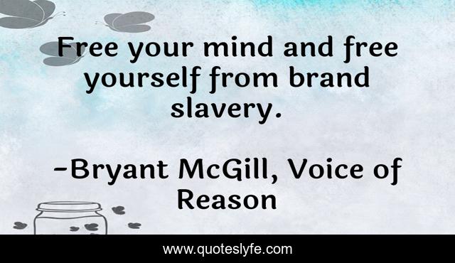 This page presents the quote "Free your mind and free yourself from brand slavery.". Author of this quote is Bryant McGill, Voice of Reason. This quote is about freedom, freewill, equality,.
