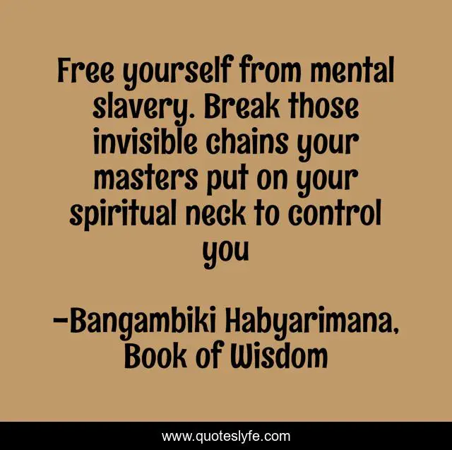 "Bangambiki Habyarimana, Book of Wisdom Quotes." Quoteslyfe.com, 2025. Fri. 05 Dec. 2025. <https://www.quoteslyfe.com/quote/Free-yourself-from-mental-slavery-Break-those-150426>.