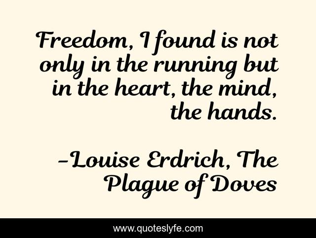 This page presents the quote "Freedom, I found is not only in the running but in the heart, the mind, the hands.". Author of this quote is Louise Erdrich, The Plague of Doves. .