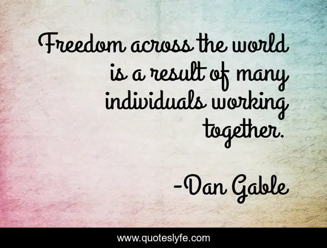 This page presents the quote "Freedom across the world is a result of many individuals working together.". Author of this quote is Dan Gable. This quote is about working together, together,.