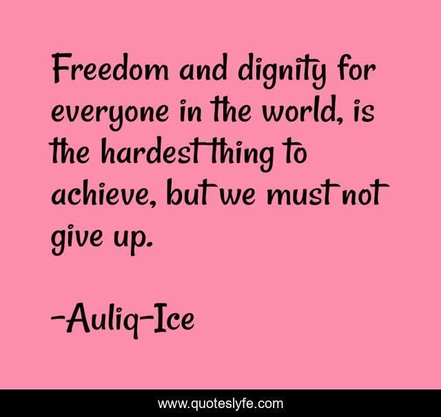 "Auliq-Ice Quotes." Quoteslyfe.com, 2025. Fri. 05 Dec. 2025. <https://www.quoteslyfe.com/quote/Freedom-and-dignity-for-everyone-in-the-54917>.