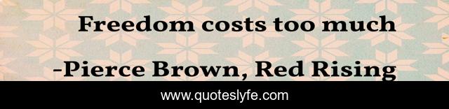This page presents the quote "Freedom costs too much". Author of this quote is Pierce Brown, Red Rising. .