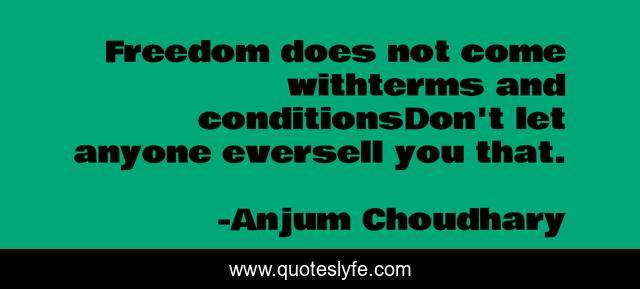 "Anjum Choudhary Quotes." Quoteslyfe.com, 2025. Sat. 06 Dec. 2025. <https://www.quoteslyfe.com/quote/Freedom-does-not-come-withterms-and-conditionsDon-104565>.