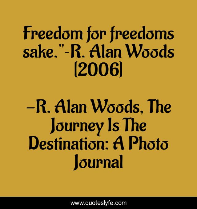 "R. Alan Woods, The Journey Is The Destination: A Photo Journal Quotes." Quoteslyfe.com, 2025. Fri. 05 Dec. 2025. <https://www.quoteslyfe.com/quote/Freedom-for-freedoms-sake-R-Alan-Woods-191280>.