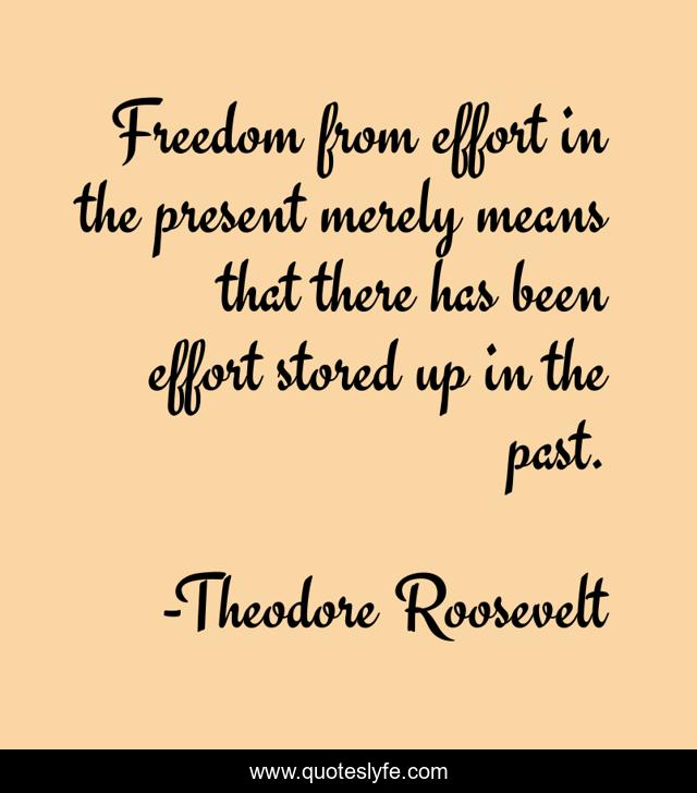 This page presents the quote "Freedom from effort in the present merely means that there has been effort stored up in the past.". Author of this quote is Theodore Roosevelt. This quote is about past, effort, present,.