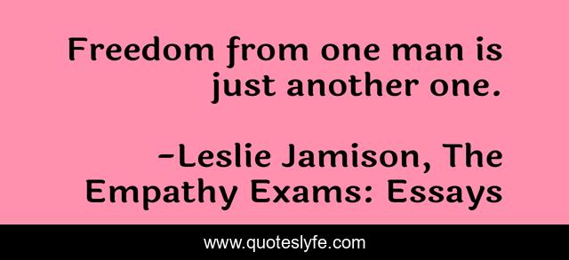 "Leslie Jamison, The Empathy Exams: Essays Quotes." Quoteslyfe.com, 2025. Fri. 05 Dec. 2025. <https://www.quoteslyfe.com/quote/Freedom-from-one-man-is-just-another-102036>.