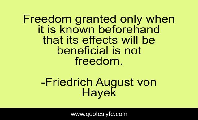 "Friedrich August von Hayek Quotes." Quoteslyfe.com, 2025. Fri. 05 Dec. 2025. <https://www.quoteslyfe.com/quote/Freedom-granted-only-when-it-is-known-330043>.