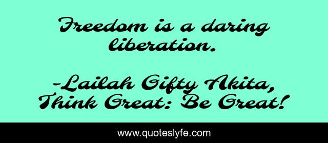 "Lailah Gifty Akita, Think Great: Be Great! Quotes." Quoteslyfe.com, 2025. Sun. 07 Dec. 2025. <https://www.quoteslyfe.com/quote/Freedom-is-a-daring-liberation-95074>.