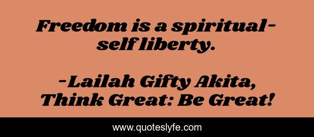 "Lailah Gifty Akita, Think Great: Be Great! Quotes." Quoteslyfe.com, 2025. Tue. 09 Dec. 2025. <https://www.quoteslyfe.com/quote/Freedom-is-a-spiritual-self-liberty-78416>.