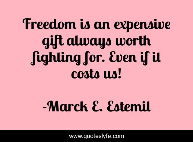 "Marck E. Estemil Quotes." Quoteslyfe.com, 2025. Mon. 08 Dec. 2025. <https://www.quoteslyfe.com/quote/Freedom-is-an-expensive-gift-always-worth-191234>.