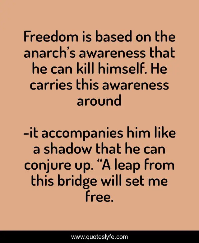 "it accompanies him like a shadow that he can conjure up. “A leap from this bridge will set me free. Quotes." Quoteslyfe.com, 2025. Fri. 05 Dec. 2025. <https://www.quoteslyfe.com/quote/Freedom-is-based-on-the-anarch-s-54549>.