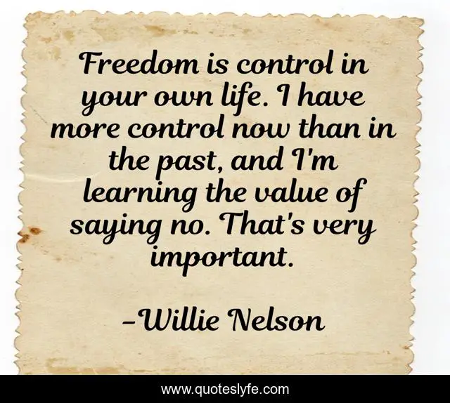 This page presents the quote "Freedom is control in your own life. I have more control now than in the past, and I'm learning the value of saying no. That's very important.". Author of this quote is Willie Nelson. This quote is about past, freedom, life,.