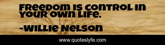 This page presents the quote "Freedom is control in your own life.". Author of this quote is Willie Nelson. This quote is about control, life, own,.