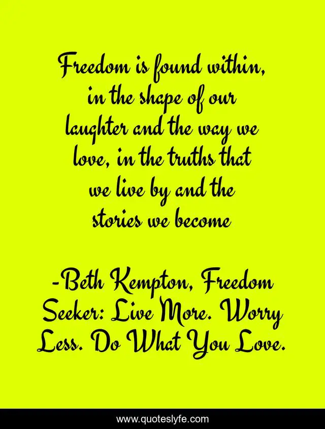 "Beth Kempton, Freedom Seeker: Live More. Worry Less. Do What You Love. Quotes." Quoteslyfe.com, 2025. Sun. 07 Dec. 2025. <https://www.quoteslyfe.com/quote/Freedom-is-found-within-in-the-shape-15214>.