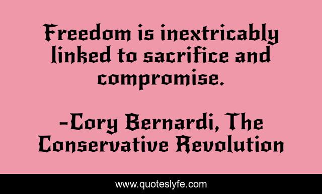 This page presents the quote "Freedom is inextricably linked to sacrifice and compromise.". Author of this quote is Cory Bernardi, The Conservative Revolution. This quote is about freedom, sacrifice,.