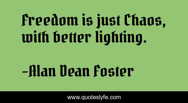 This page presents the quote "Freedom is just Chaos, with better lighting.". Author of this quote is Alan Dean Foster. This quote is about better, lighting, chaos,.