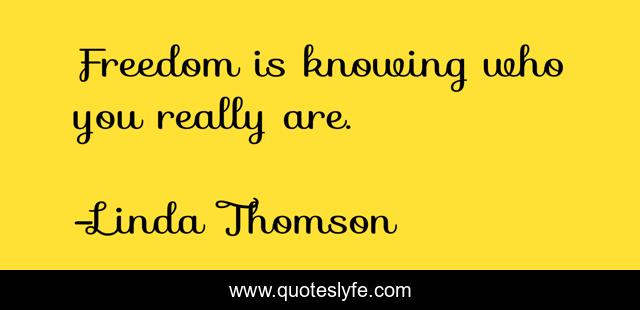 "Linda Thomson Quotes." Quoteslyfe.com, 2025. Sat. 06 Dec. 2025. <https://www.quoteslyfe.com/quote/Freedom-is-knowing-who-you-really-are-275972>.