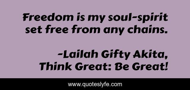 "Lailah Gifty Akita, Think Great: Be Great! Quotes." Quoteslyfe.com, 2025. Sun. 07 Dec. 2025. <https://www.quoteslyfe.com/quote/Freedom-is-my-soul-spirit-set-free-76306>.