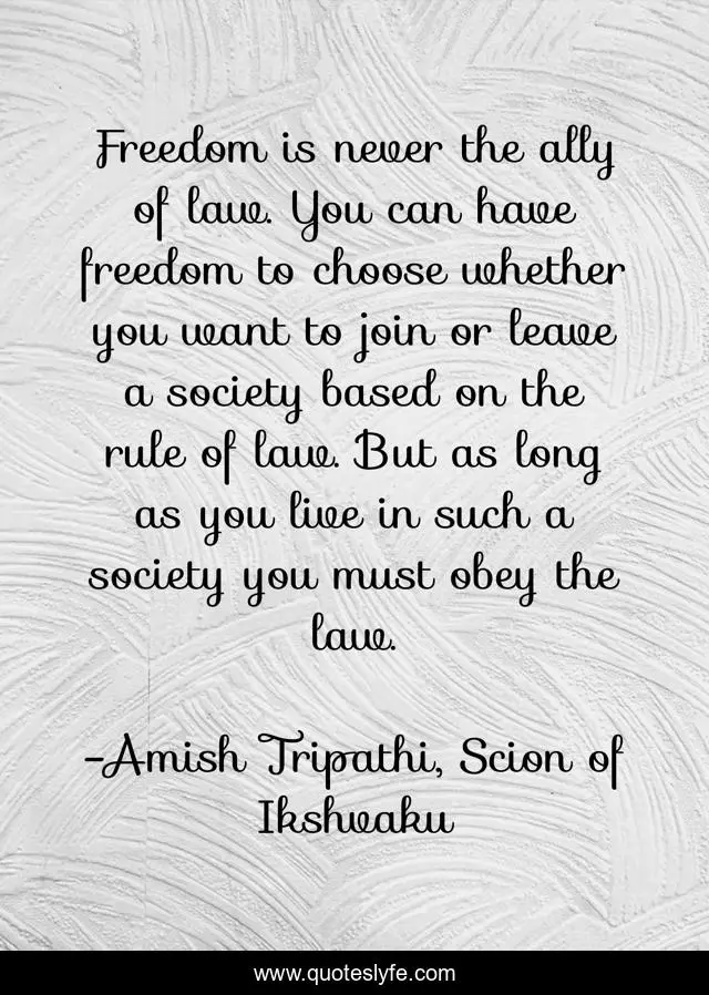 "Amish Tripathi, Scion of Ikshvaku Quotes." Quoteslyfe.com, 2025. Sat. 06 Dec. 2025. <https://www.quoteslyfe.com/quote/Freedom-is-never-the-ally-of-law-199796>.