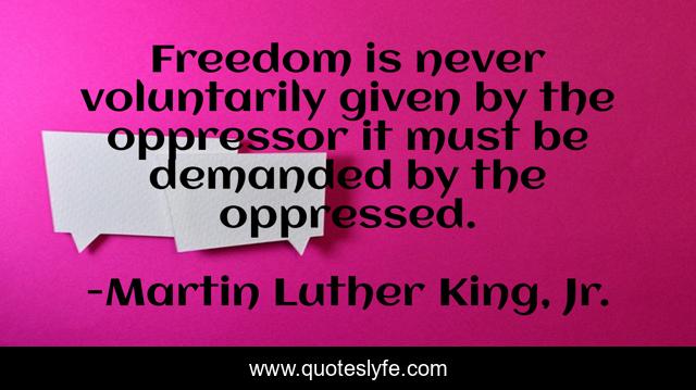 "Martin Luther King, Jr. Quotes." Quoteslyfe.com, 2025. Fri. 05 Dec. 2025. <https://www.quoteslyfe.com/quote/Freedom-is-never-voluntarily-given-by-the-329994>.