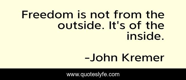 This page presents the quote "Freedom is not from the outside. It's of the inside.". Author of this quote is John Kremer. .