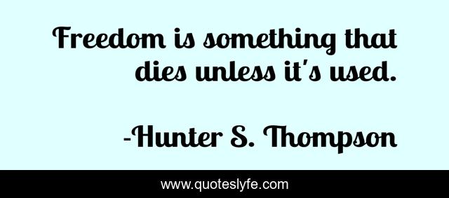 This page presents the quote "Freedom is something that dies unless it's used.". Author of this quote is Hunter S. Thompson. This quote is about used, unless, something,.