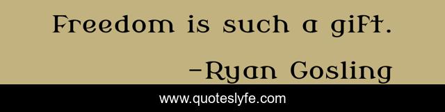This page presents the quote "Freedom is such a gift.". Author of this quote is Ryan Gosling. .