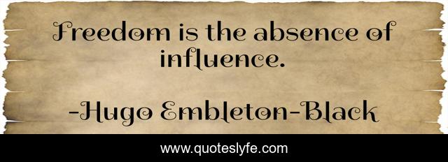 "Hugo Embleton-Black Quotes." Quoteslyfe.com, 2025. Sat. 06 Dec. 2025. <https://www.quoteslyfe.com/quote/Freedom-is-the-absence-of-influence-125566>.
