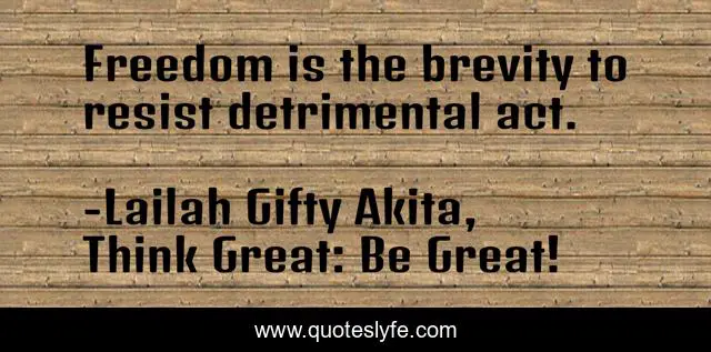 "Lailah Gifty Akita, Think Great: Be Great! Quotes." Quoteslyfe.com, 2025. Tue. 09 Dec. 2025. <https://www.quoteslyfe.com/quote/Freedom-is-the-brevity-to-resist-detrimental-91746>.