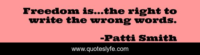 This page presents the quote "Freedom is...the right to write the wrong words.". Author of this quote is Patti Smith. This quote is about freedom, inspirational, words, enthusiasm,.