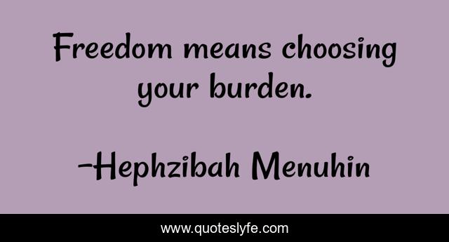 "Hephzibah Menuhin Quotes." Quoteslyfe.com, 2025. Mon. 08 Dec. 2025. <https://www.quoteslyfe.com/quote/Freedom-means-choosing-your-burden-276201>.