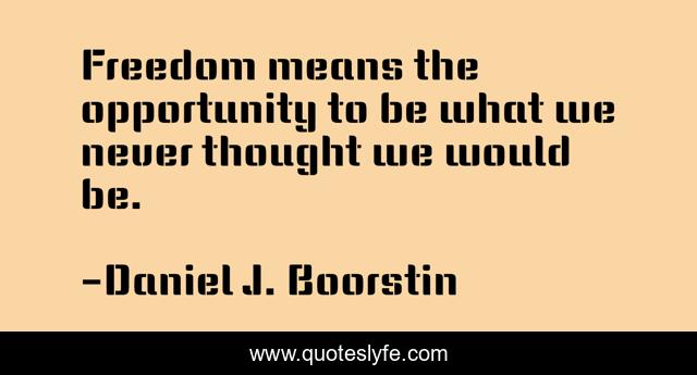 "Daniel J. Boorstin Quotes." Quoteslyfe.com, 2025. Mon. 08 Dec. 2025. <https://www.quoteslyfe.com/quote/Freedom-means-the-opportunity-to-be-what-189237>.