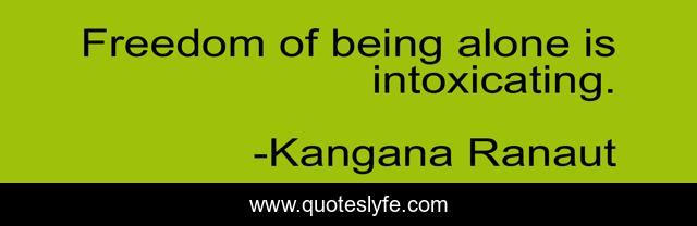 This page presents the quote "Freedom of being alone is intoxicating.". Author of this quote is Kangana Ranaut. This quote is about being, freedom, being alone,.
