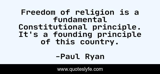 This page presents the quote "Freedom of religion is a fundamental Constitutional principle. It's a founding principle of this country.". Author of this quote is Paul Ryan. This quote is about freedom, country,.
