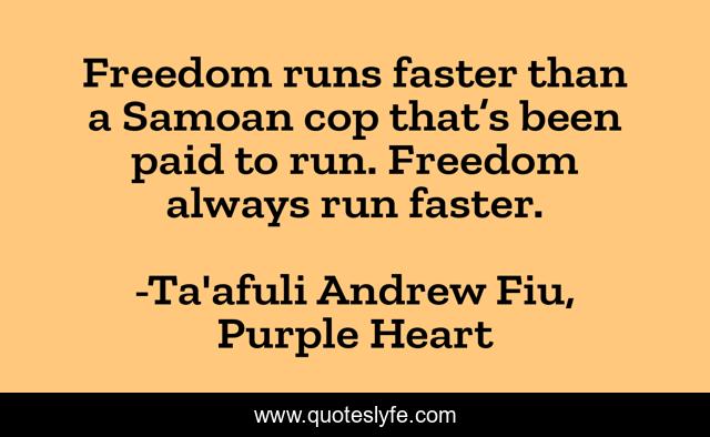 "Ta'afuli Andrew Fiu, Purple Heart Quotes." Quoteslyfe.com, 2025. Fri. 05 Dec. 2025. <https://www.quoteslyfe.com/quote/Freedom-runs-faster-than-a-Samoan-cop-54837>.