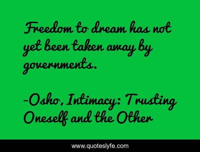 This page presents the quote "Freedom to dream has not yet been taken away by governments.". Author of this quote is Osho, Intimacy: Trusting Oneself and the Other. This quote is about freedom, dream, governments,.