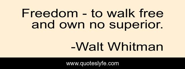 This page presents the quote "Freedom - to walk free and own no superior.". Author of this quote is Walt Whitman. This quote is about own, free, walk,.