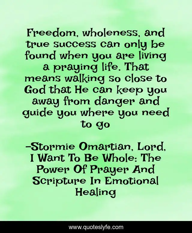 "Stormie Omartian, Lord, I Want To Be Whole: The Power Of Prayer And Scripture In Emotional Healing Quotes." Quoteslyfe.com, 2025. Sat. 06 Dec. 2025. <https://www.quoteslyfe.com/quote/Freedom-wholeness-and-true-success-can-only-84913>.