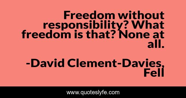 "David Clement-Davies, Fell Quotes." Quoteslyfe.com, 2025. Sat. 06 Dec. 2025. <https://www.quoteslyfe.com/quote/Freedom-without-responsibility-What-freedom-is-that-200889>.