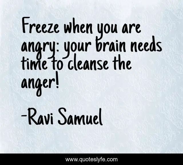 This page presents the quote "Freeze when you are angry: your brain needs time to cleanse the anger!". Author of this quote is Ravi Samuel. .