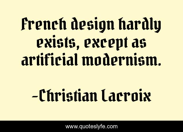 This page presents the quote "French design hardly exists, except as artificial modernism.". Author of this quote is Christian Lacroix. This quote is about artificial, modernism,.