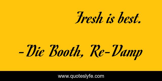 "Die Booth, Re-Vamp Quotes." Quoteslyfe.com, 2025. Mon. 08 Dec. 2025. <https://www.quoteslyfe.com/quote/Fresh-is-best-156568>.