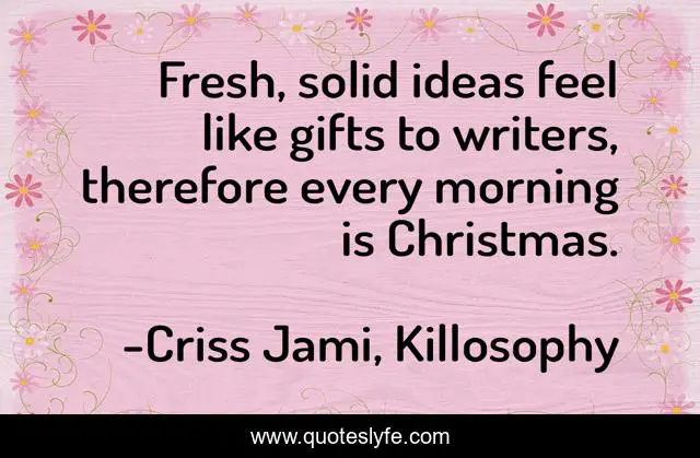 "Criss Jami, Killosophy Quotes." Quoteslyfe.com, 2025. Sat. 06 Dec. 2025. <https://www.quoteslyfe.com/quote/Fresh-solid-ideas-feel-like-gifts-to-97615>.