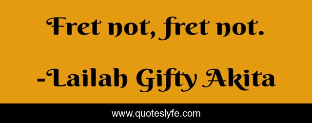 This page presents the quote "Fret not, fret not.". Author of this quote is Lailah Gifty Akita. This quote is about fret, fear, anxiety, hope, inspiration,.