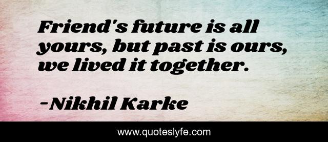 This page presents the quote "Friend's future is all yours, but past is ours, we lived it together.". Author of this quote is Nikhil Karke. This quote is about friends, friendship,.