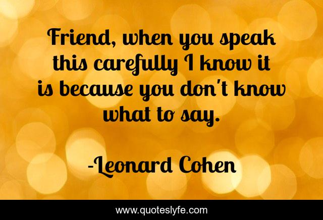 This page presents the quote "Friend, when you speak this carefully I know it is because you don't know what to say.". Author of this quote is Leonard Cohen. .